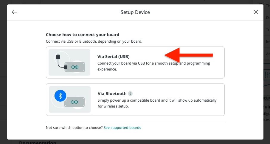 Si aprirà una finestra pop-up, poiché la nostra intenzione è configurare una scheda Arduino UNO WiFi fate clic sull’area “Arduino boards”