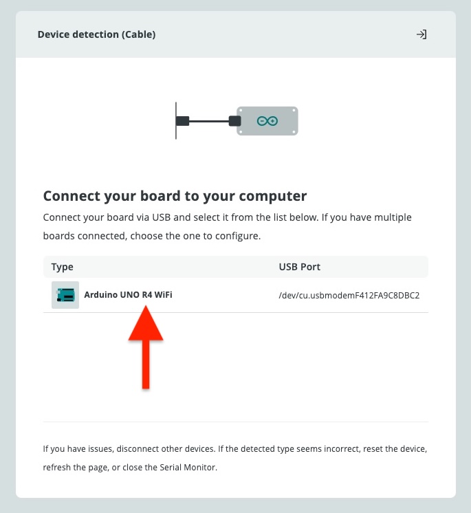 Dopo aver effettuato l’accesso ad Arduino Cloud, collega la UNO R4 WiFi al PC tramite cavo USB.