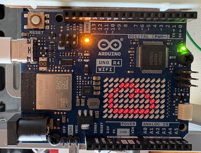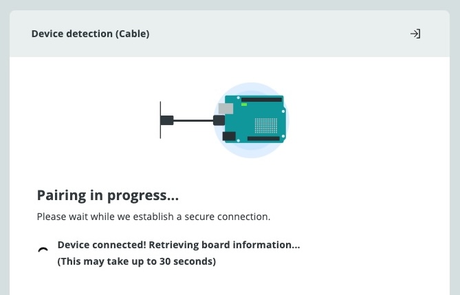 Sulla matrice della scheda vedrete l’icona della nuvola che vi segnala che siete connessi al Cloud di Arduino:
