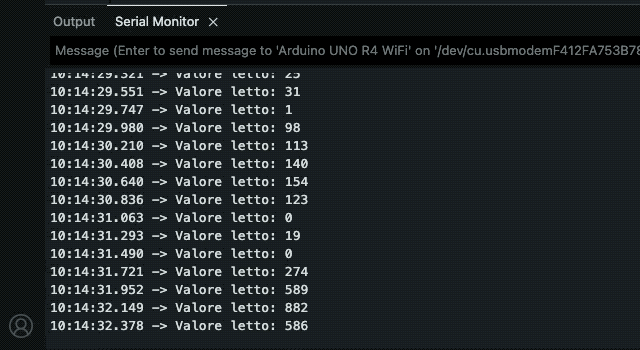 - un ingresso analogico può mostrare valori che cambiano continuamente nel monitor seriale.