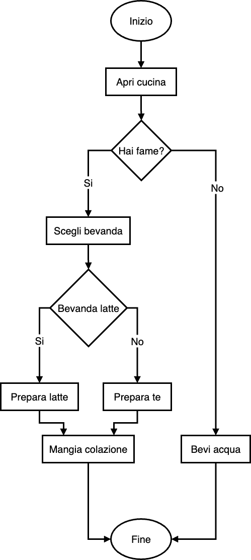 :quando aprono un blocco:SE … ALLORA: … ALTRIMENTI:MENTRE (condizione):PER i da A a B:FUNZIONE nome(parametri): RITORNA valore