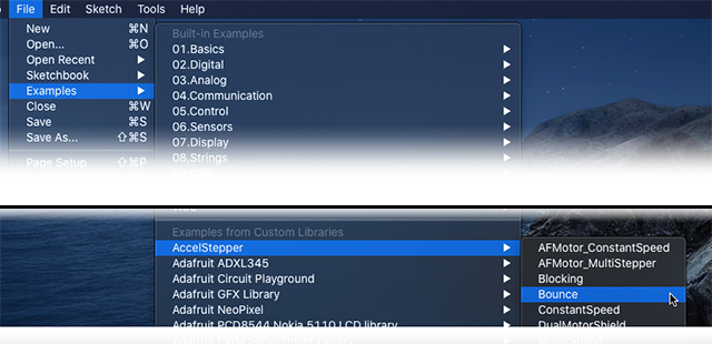 Utilizzerò lo sketch stepper_oneRevolution presente nell’IDE di Arduino.