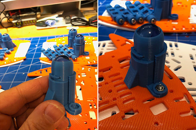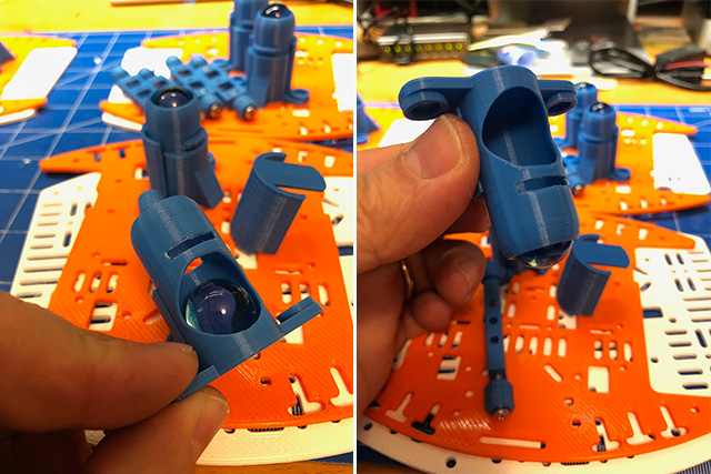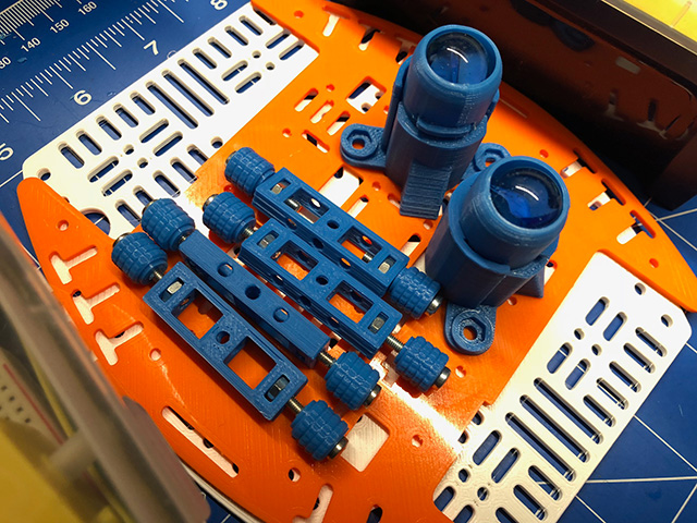 Vi avevo mostrato il disegno della la versione “truck” di DotBot:bit che ho stampato ieri, dotata frontalmente e posteriormente di fori a cui fissare, mediante piccole viti e dadi M3, estensioni meccaniche per alloggiare oggetti di varia natura, come evidenziato nelle foto che seguono: