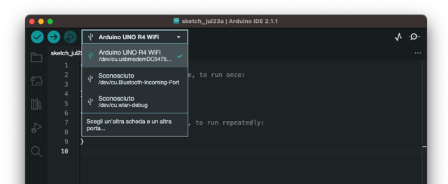 Diagnosi degli errori durante l’esecuzione: Arduino UNO R4 Wi-Fi dispone di un sistema di identificazione degli errori che rileva i crash durante l’esecuzione e fornisce descrizioni approfondite e consigli relativi alla riga di codice che ha provocato il crash.