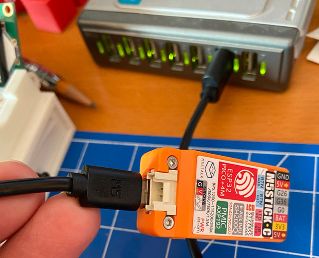 Al termine dell’installazione di UIFlow collegate M5StickC con il cavo USB C al computer.