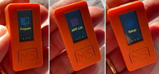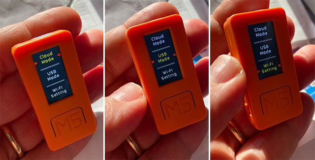 Una pressione di 2 secondi sul power button, sulla sinistra di M5SickC provoca l’accensione del dispositivo, non appena compare il logo di UIFlow premete il pulsante grande M5 per accedere al menù di setting. Per spostarsi tra i menù disponibili utilizzare il pulsante sulla destra in alto di M5StickC: