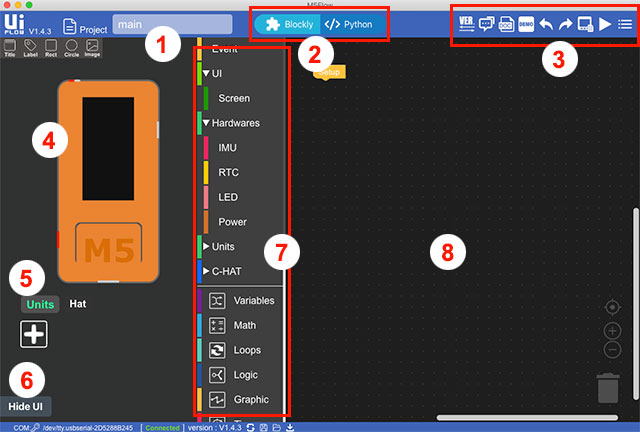 UIFlow fornisce le funzionalità necessarie per la realizzazione, in maniera estremamente semplice, progetti con forte interazione con il mondo reale, ideale quindi per chi si avvicina al mondo della prototipazione elettronica, dell’automazione e della programmazione.
