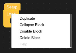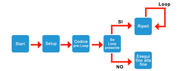 Il blocco Setup è essenziale per eseguire qualsiasi programma è il primo blocco che viene eseguito non appena il programma viene caricato sul dispositivo. Il Setup viene eseguito una sola volta.