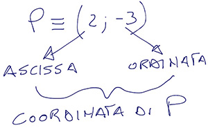 A ogni coppia di numeri (x, y) corrisponde un punto del piano cartesiano e, viceversa, a ogni punto del piano corrisponde una coppia di numeri detti ascissa e ordinata del punto; i due numeri sono le coordinate del punto.