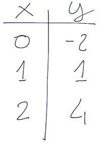 Proviamo ora a tracciare il grafico che rappresenta la funzione: y=3x-2 e per far questo è necessario trovare una serie di punti che, uniti tra loro, forniscono la linea cercata.