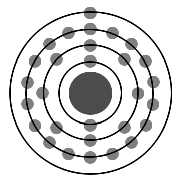 Nella figura che segue è rappresentato il modello dell’atomo di rame costituito da 29 elettroni che gravitano in differenti orbite attorno al nucleo.