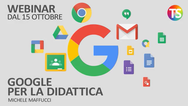 Si riparte con i corsi per Tecnica della Scuola con il sempre apprezzato Google per la didattica giunto alla 5ª edizione. Ogni volta, analizzando le necessità dei colleghi, ho aggiunto nuovi esempi ripresi dal vivere quotidiano del docente e dello studente, esercizi, schede di lavoro, modelli da replicare. La collezione di tutte le risorse, che sta diventando un vero manuale che amplio ad ogni edizione, sarà ceduto, insieme alle slide del corso, a coloro che parteciperanno alle sessioni di formazione.