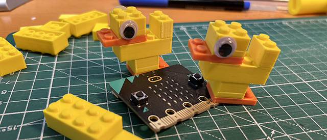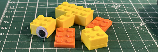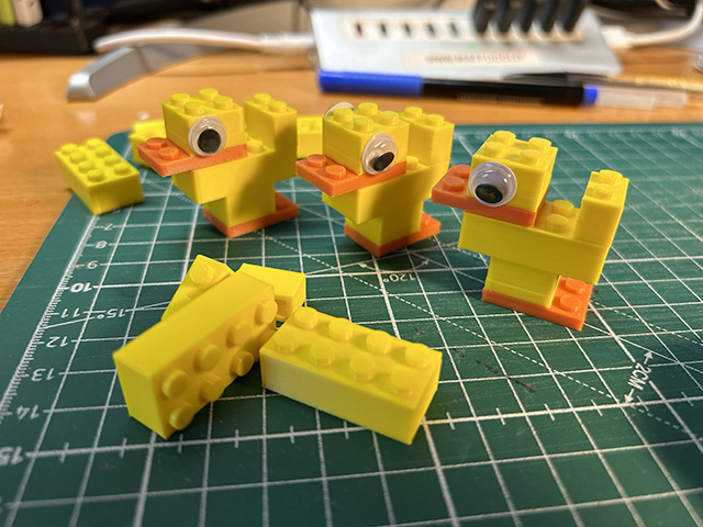 Online sono disponibili modelli di mattoncini già pronti per la stampa 3D, ma ho apportato alcune piccole modifiche ai mattoncini per migliorare la stabilità degli agganci tra i pezzi. A breve condividerò i file sorgente per consentirvi di replicare questa soluzione. Per rendere il set di mattoncini simile all’originale, ho acquistato degli occhietti adesivi online e li ho applicati su uno dei mattoncini. Sarà anche possibile, evitando di applicare gli occhi adesivi, di disegnare forme diverse degli occhi in modo che sia possibile far assumere espressioni diverse all’anatra.