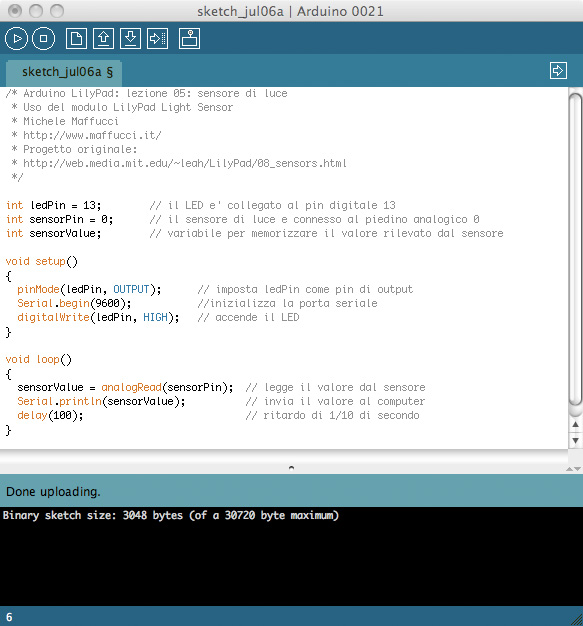 /* Arduino LilyPad: lezione 05: sensore di luce