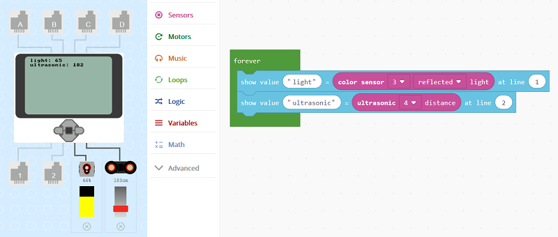 Modalità reale: entrambi i microbit sono connessi allo stesso computer, vengono programmati ed usati insieme: