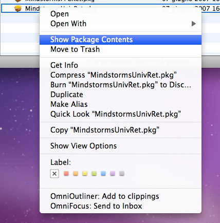 Da poco sono passato definitivamente a Snow Leopard su tutti i Mac che possiedo e utilizzando Lego Mindstorms ho immediatamente constatato che l’installazione del software di programmazione dato in dotazione con il kit non va a buon fine, è indispensabile procedere con qualche piccolo trucco.