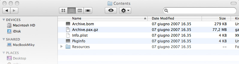 Click con tasto destro del mouse oppure ctrl+click e guardate all’interno del package si aprirà una finestra con un’unica cartella: “Contents”