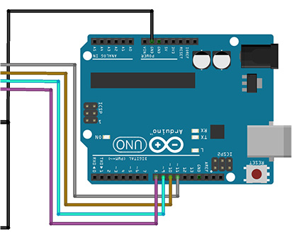 Lo schema elettrico di collegamento è il medesimo visto nella lezione precedente, potete utilizzare entrambi gli schemi proposti, con alimentazione presa direttamente da Arduino o con alimentazione esterna che vi consiglio.