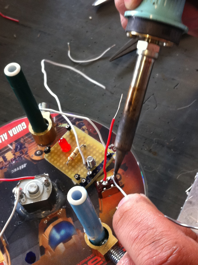 Fase 4: realizzazione dell’elettronica di controllo che permetterà vi variare il senso di rotazione del motorino che permette la vibrazione e la cui velocità sarà governata da una fotoresistenza.