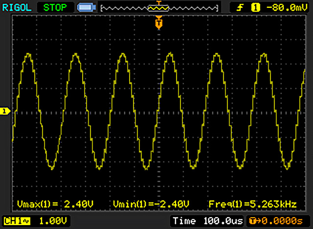 Se non possedete un oscilloscopio potete inviare l’output ad un amplificatore audio in modo che possiate ascoltare la tonalità generata, ricordate però che se procedete in questo modo bisogna assicurarsi che il controllo del volume sull’amplificatore sia al minimo, dopo di che lentamente aumentate il volume.