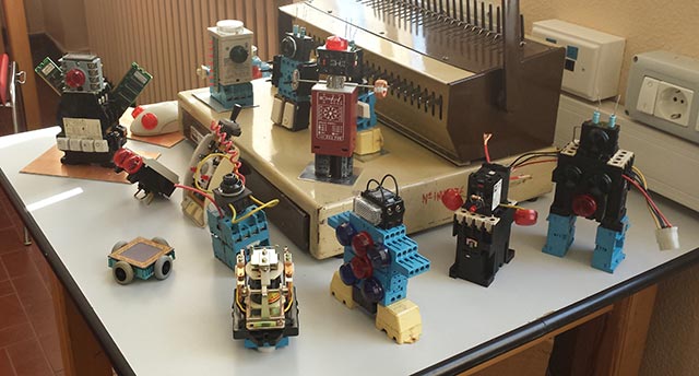 Presso la scuola in cui presto servizio, l’IIS Galilei-Ferrari di Torino, scuola capofila della Rete Robotica a Scuola, è attivo in questi giorni il laboratorio di robotica ludica che vede gli studenti impegnati a realizzare con materiali elettrici ed elettronici di recupero, dei robottini destinati ai bambini dell’ospedale Regina Margherita di Torino.