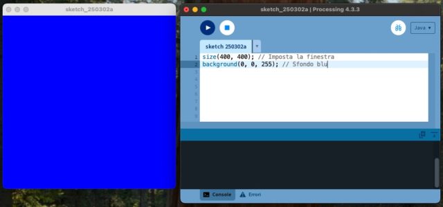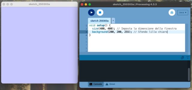 In questo caso, background(200, 200, 255); viene eseguito una sola volta all’inizio, quindi lo sfondo non cambia più.