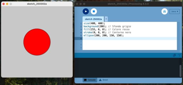 Esercizio: Prova a cambiare il colore del cerchio variando i valori RGB nella funzione fill().
