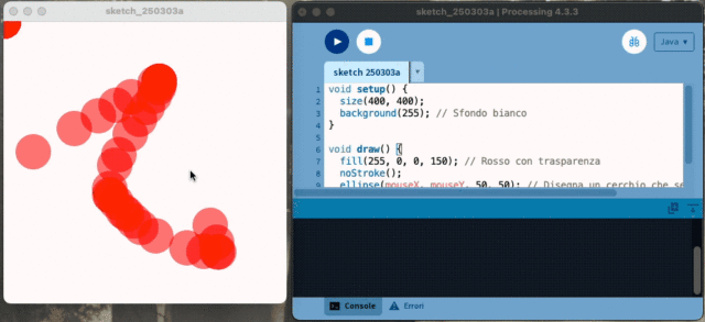 • draw(): eseguita continuamente in un ciclo, permettendo di aggiornare la grafica in tempo reale.