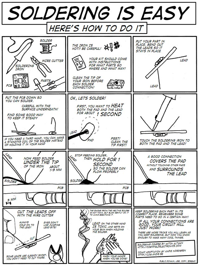 Vi ricordo che la saldatura a stagno dei componenti elettronici necessita di molta pratica e attenzione e per tale motivo ho riassunto in una dispensa le nozioni spiegate a lezione negli scorsi giorni in laboratorio.