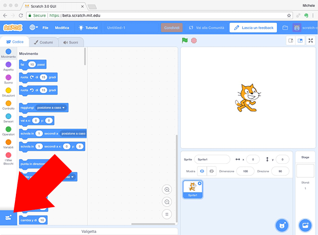 Scratch è uno degli strumenti più interessanti per sviluppare attività di Coding, è un linguaggio di programmazione a blocchi, gratuito, che insegna a studenti di ogni età le basi della programmazione in una modalità creativa dando spazio ad immaginazione attraverso la produzione di programmi con forte contenuto interattivo. In Scratch l’utente si troverà ad assegnare funzionalità ad oggetti grafici mediante la realizzazione di programmi costituiti da blocchi grafici funzionali tra essi connessi ed i programmi agiscono su elementi grafici disegnati dall’utente oppure su dispositivi hardware connessi al computer e comandati attraverso Scratch 3.