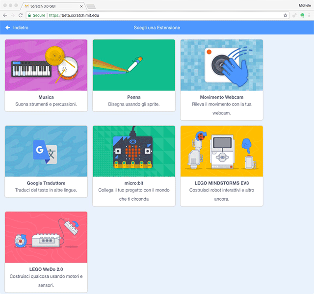 Si analizzeranno in modo specifico istruzioni per manipolare applicativi e hardware esterno con cui gli studenti potranno programmare dispositivi fisici come BBC micro:bit, Lego Mindstorms EV3, Lego WeDo 2.0, Makey Makey, ma anche servizi web come come Google Traduttore.