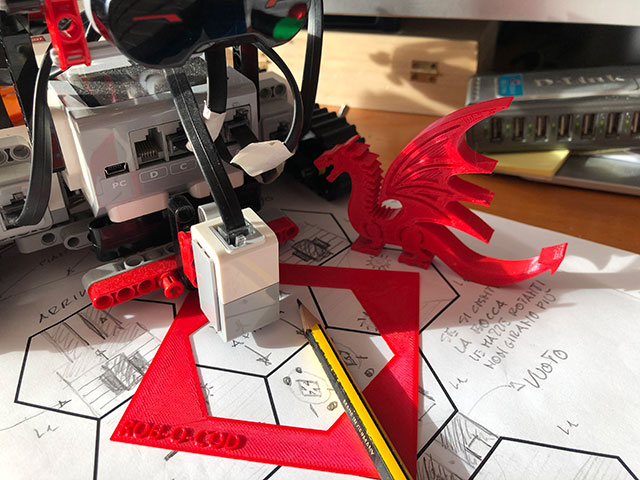 Ecco svelato l’arcano, avevo accennato su Facebook ma ora posso finalmente rispondere pubblicamente su queste pagine a quanti mi chiedevano cosa stessi combinando in tutti questi mesi con strani esagoni, robot Lego Mindstorms EV3 e draghi 🙂