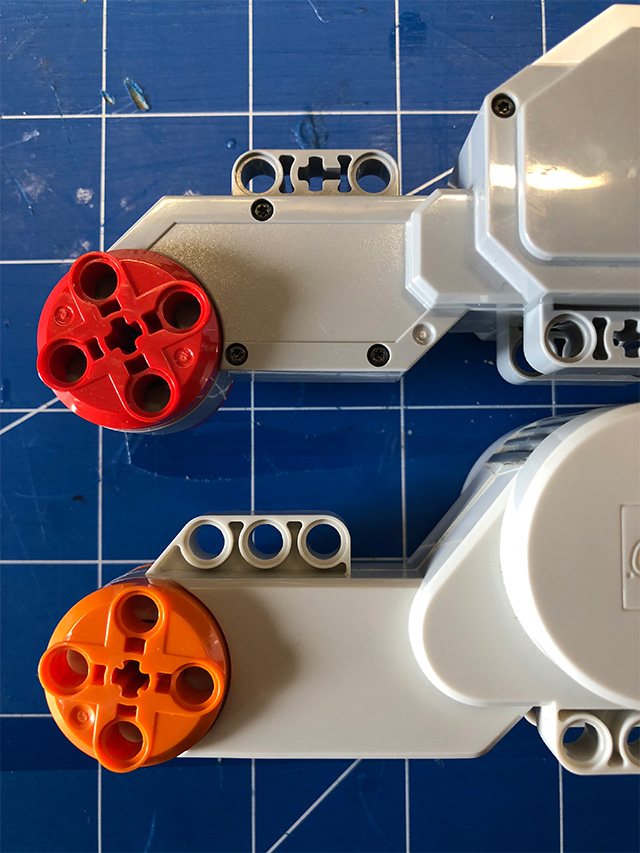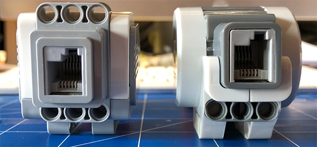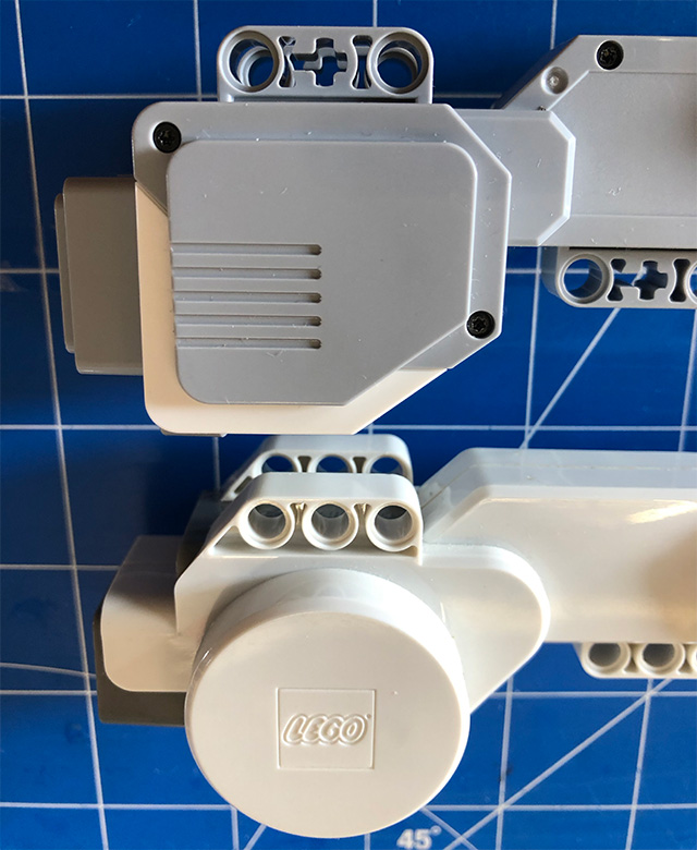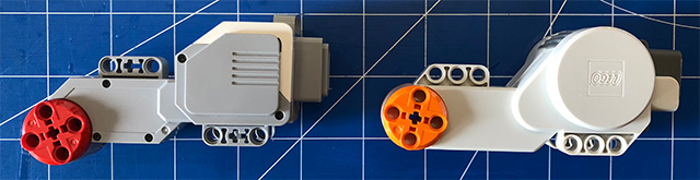 I due motori hanno circa le stesse dimensioni, però ad un esame più attento, i due motori richiedono procedure di montaggio diverse. Il motore NXT ha tutti i fori arrotondati, mentre i collegamenti del motore EV3 hanno fori arrotondati e trasversali. Il motore EV3 ha anche una fila aggiuntiva di tre fori vicino al connettore elettrico e ciò lo rende più versatile. I fori del motore EV3 sono molto più bassi e alcuni sono addirittura spostati su un lato.