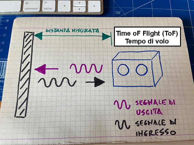 Un sensore ToF effettua un conteggio del tempo totale di volo dei fotoni dal momento in cui vengono emessi da un piccolissimo raggio laser al momento in cui viene rilevata la riflessione su un fotodiodo collocato sul sensore.