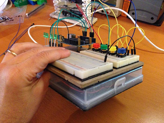 Tutto è nato dall’esigenza di avere qualcosa che mi consentisse agevolmente di trasportare circuiti da casa a scuola e viceversa, portando con me l’indispensabile per svolgere la lezione. Come sempre amo ricavare i miei dispositivi riutilizzando il più possibile materiali che non uso più o materiali destinati ad altri scopi… insomma un modo divertente per tenere in allenamento il proprio spirito da maker 🙂