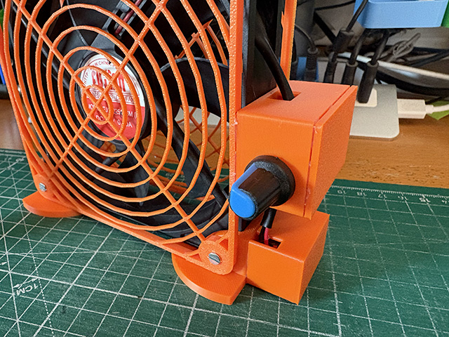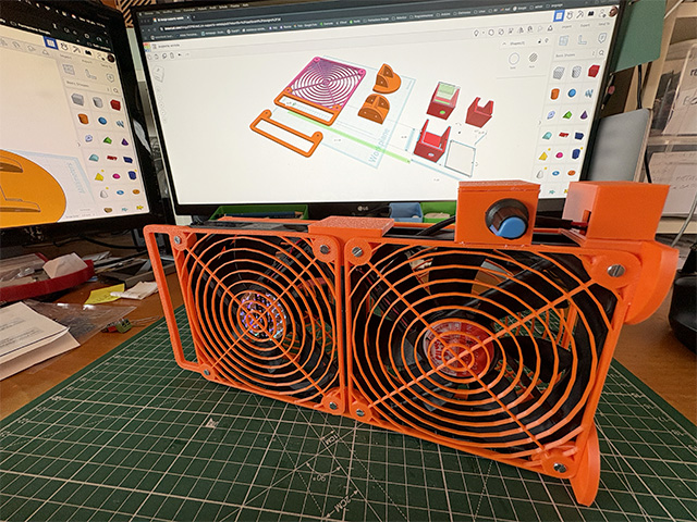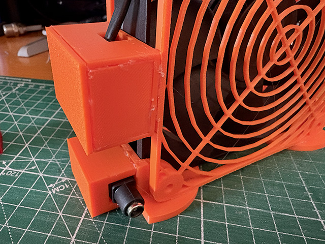 Altri trenta minuti per progettare e stampare due scatoline, una per il regolatore e una per il jack di alimentazione e il mio EcoFan è pronto.
